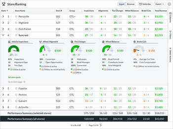 View vehicle inspection trends and measure total events, alignment and tread opportunities, and alignments or tire changes performed over custom time ranges.