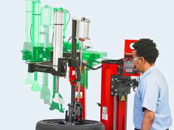 Optional. Die abgebildete Radhebevorrichtung kann je nach Reifenmontiermaschinenmodell abweichen.