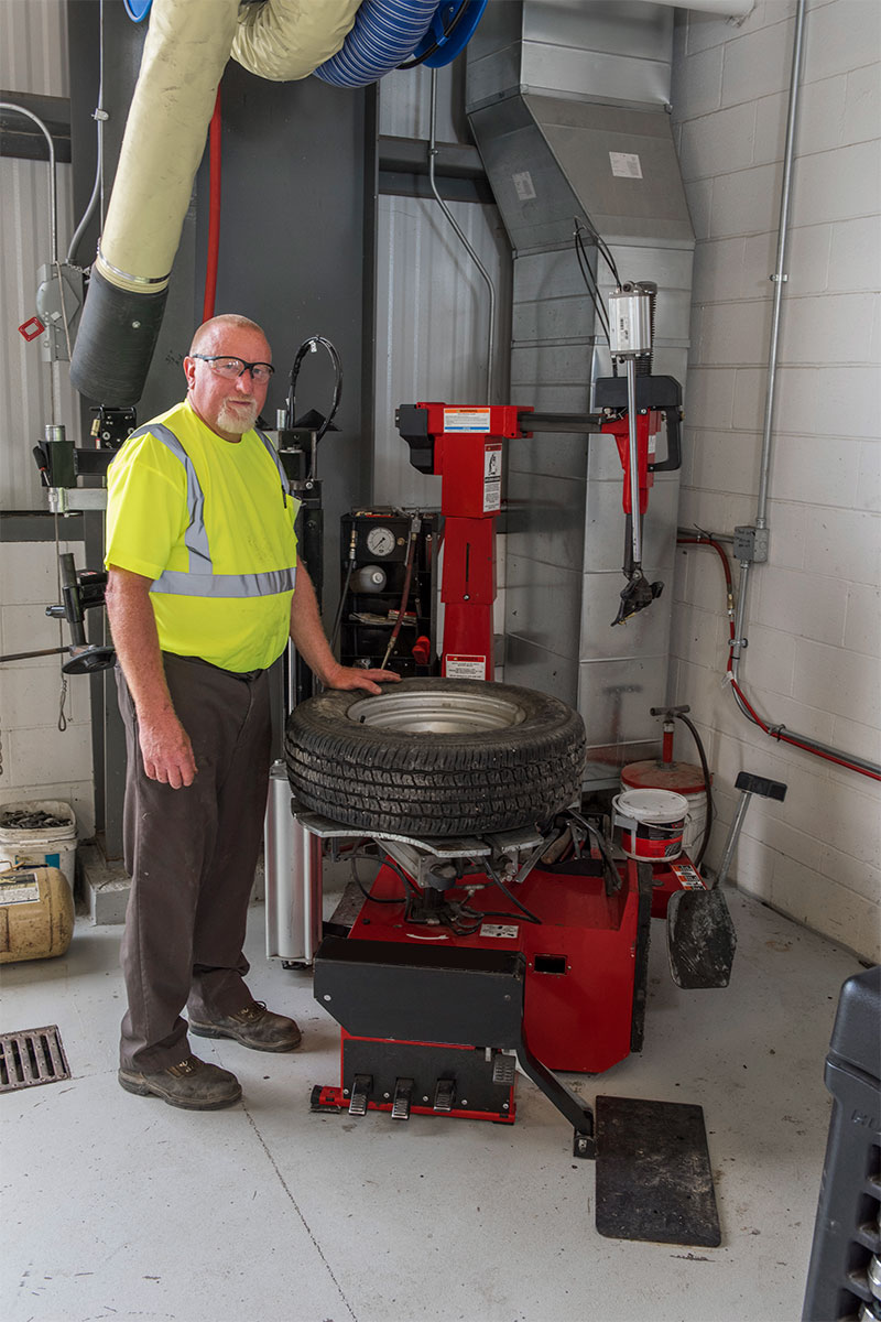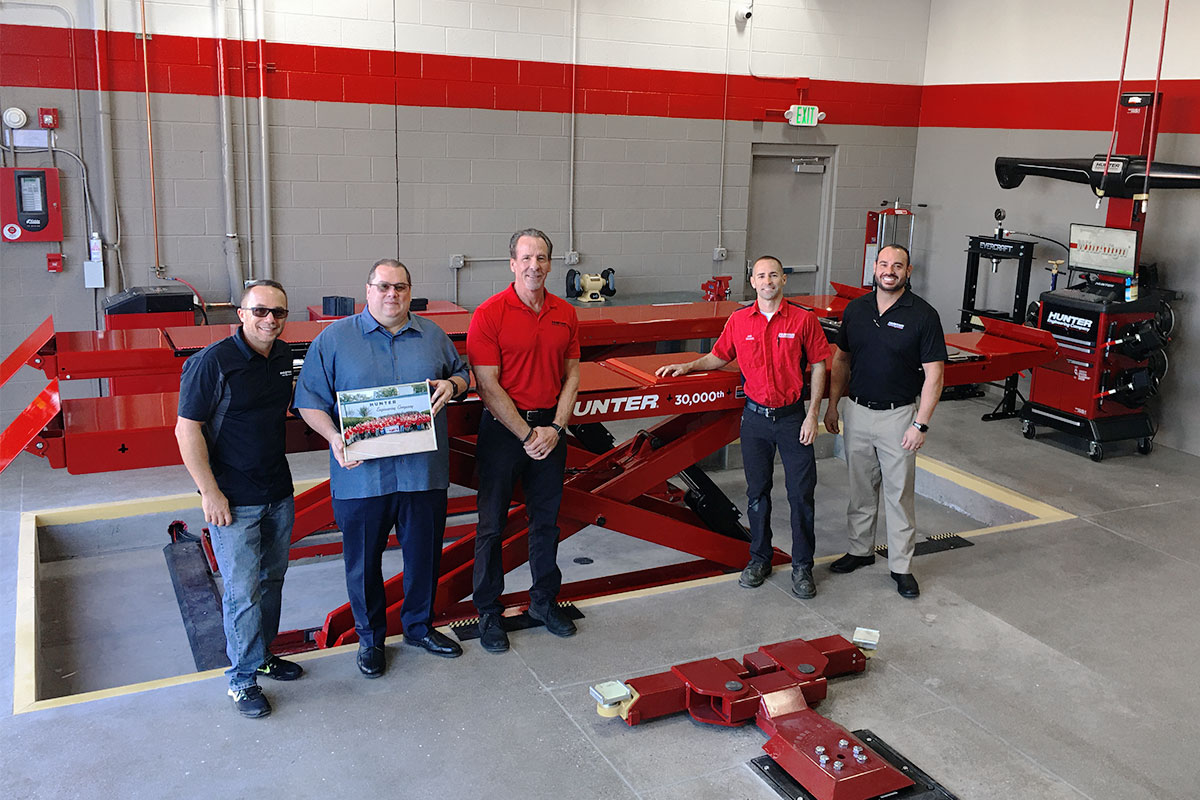 hunter service representatives with technicians and revolution tire changer