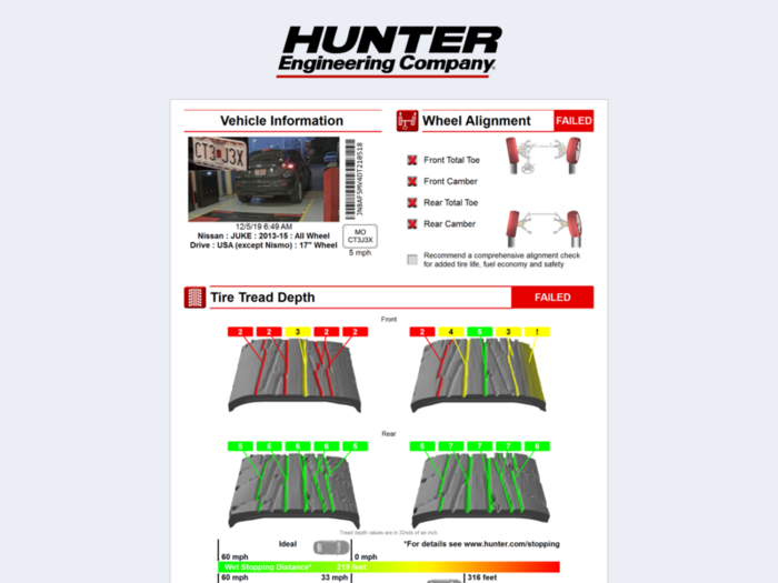 Check the most important alignment angles and edge-to-edge tire tread on every car that visits your shop, no stopping or labor required.